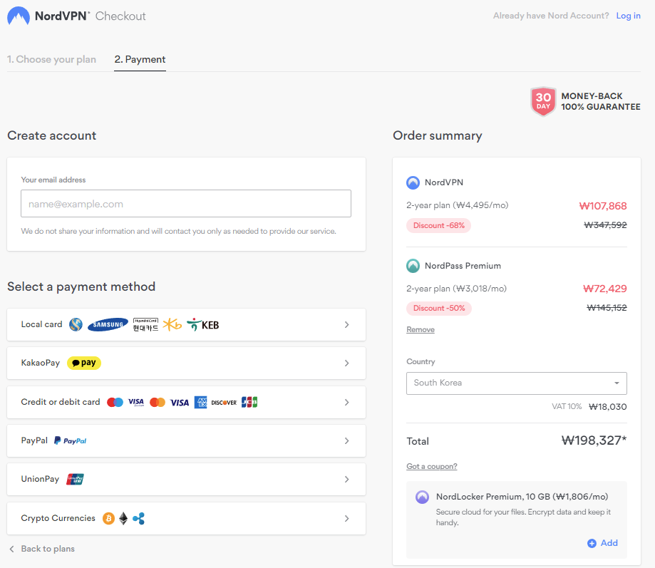 First, decide on your pricing policy (plan). The longer the subscription period, the greater the discount rate, so it is recommended to take a longer period if you plan to use it continuously. 100% refund is possible for 30 days, so there is no need to use a monthly plan instead of a long-term subscription. If you sign up for a long-erm, and if you don't like it, you can get a refund within 30 days.
