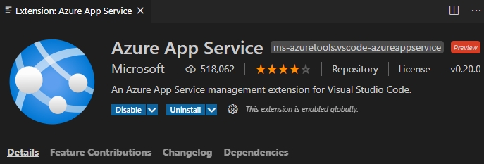 VS Code에서 App Service를 사용하기 위해서 'Azure App Service' Extentions을 설치합니다.