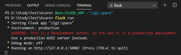 flask를 실행하기 위해서 FLASK_APP 환경 변수를 지정하고, 실행합니다.