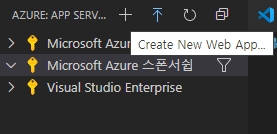 이제 VS Code의 Azure App Service Extention에서 'Create New Web App'을 선택해서 새로운 Web App을 만듭니다.