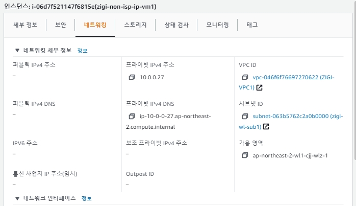 통신사 IP 자동 할당을 비활성화 해서 EC2를 생성하면 다음과 같이 통신 사업자 IP가 비어 있는 것을 볼 수 있고,