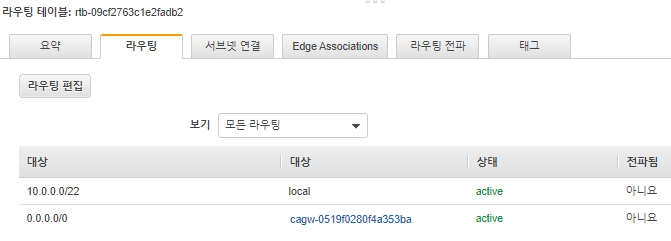 해당 옵션을 설정하지 않았다면, 별도의 라우팅 테이블을 직접 생성한 이후에