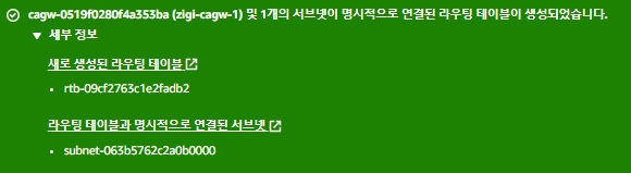 해당 라우팅 테이블이 Carrier Gateway를 만들 때 지정한 서브넷에 연결됩니다.