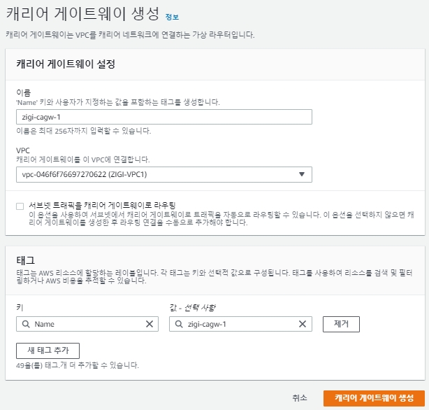 그리고 바로 Carrier Gateway를 생성 할 수 있지만,