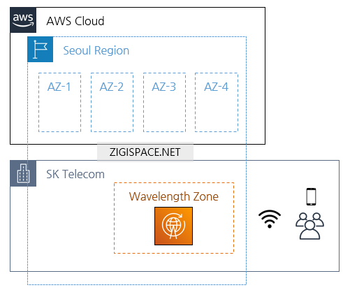 서울 리전 내에 기존 가용 영역 AZ-1~AZ-4가 위치해 있고, SK Telecom 내에 구축된 Wavelength가 있는 것을 볼 수 있습니다.
