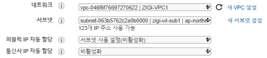 기본 EC2 생성은 모두 동일하기 때문에 네트워크 설정만 확인합니다.