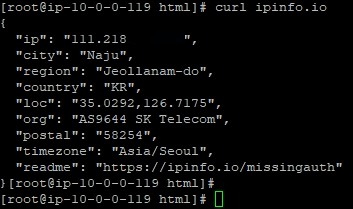 통신사 IP 자동 할당을 해서 받은 EC2에 접속해서 IP 정보를 확인하면, 통신사 IP로 가지고 외부망과 통신하는 것을 볼 수 있습니다.