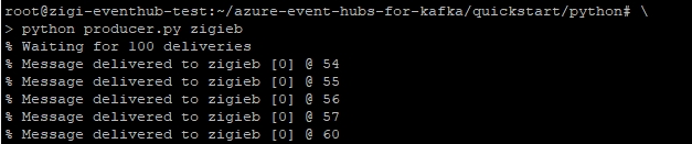 producer를 실행하여, 메시지를 Event hubs로 전달합니다.