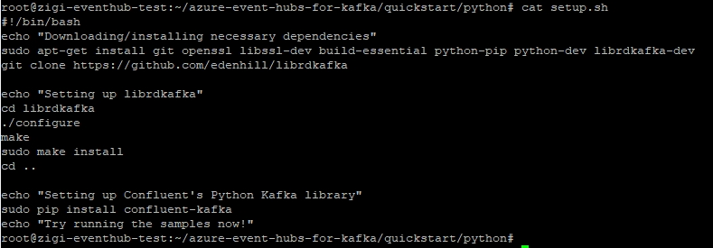 | cd azure-event-hubs-for-kafka / quickstart / python |