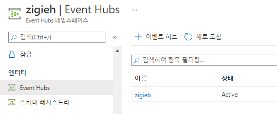 저는 zigieh라는 이름으로 Event Hubs 네임스페이스를 지정했기 때문에