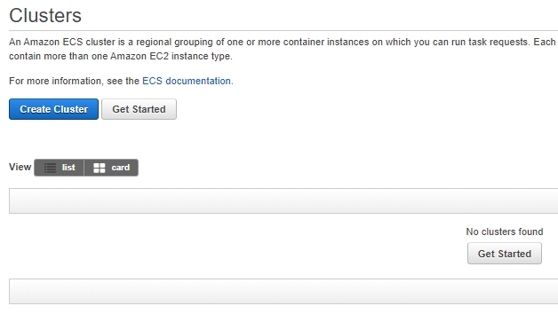 Cluster 생성을 위해서 ECS Clutser 메뉴에서 'Create Cluster'를 선택합니다.