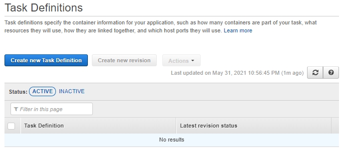 Task Definitions에서 'Create new Task Definition'을 클릭합니다.