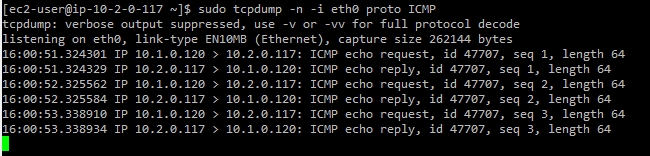여기에서 ZIGI-VPC2-SVR로 ping을 보내면 Transit Gateway 연동되지 않은 대역이지만, 정상적으로 통신되는 것을 볼 수 있습니다.