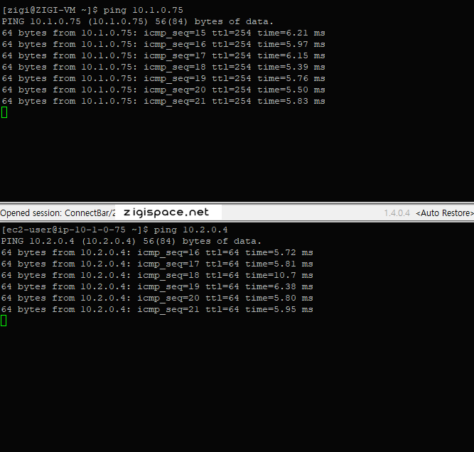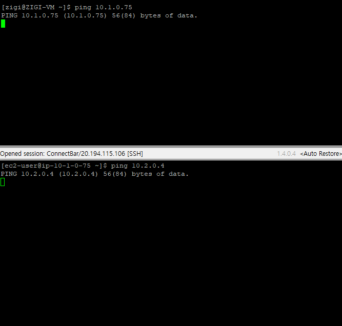 AWS는 10.1.0.75라는 IP를 갖고 있고, Azure는 10.2.0.4라는 IP를 갖고 있습니다.