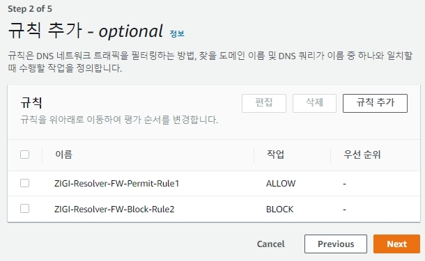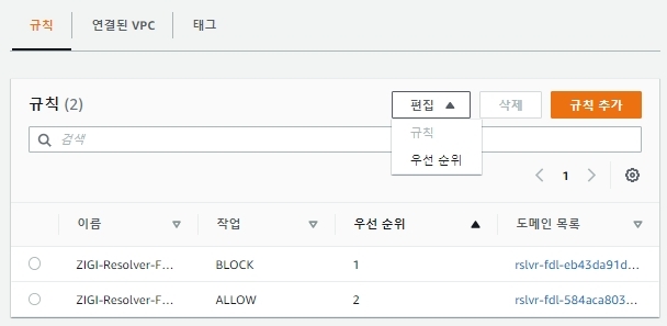 2번째로 만든 ZIGI-Resolver-FW-Block-Rule2를 우선 순위가 더 높게 아래와 같이 조정합니다.