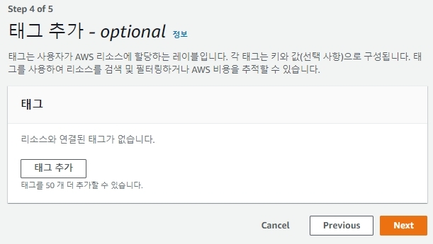 규칙 그룹을 만드는 4번째 단계는 태그 설정입니다.