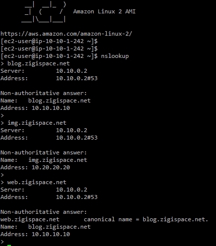 이제 Route 53 Resolver DNS 방화벽 동작 확인을 위해서 VPC 내의 EC2 인스턴스에서 nslookup으로 도메인 질의 확인을 합니다.