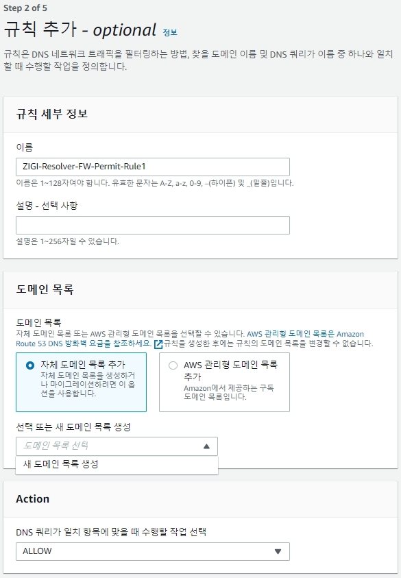 도메인 목록은 자체 도메인 목록 추가와 AWS 관리형 도메인 목록이 있습니다.