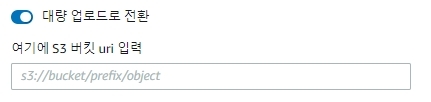 '대량 업로드 전환' 메뉴를 통해서 S3에 미리 정의한 도메인 목록을 한꺼번에 지정해서 관리할 수도 있습니다.