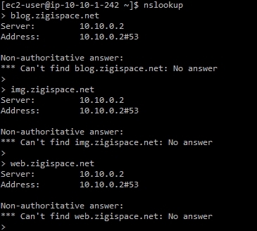 이제 Route 53 Resolver DNS 방화벽 동작 확인을 위해서 VPC 내의 EC2 인스턴스에서 nslookup으로 도메인 질의 확인을 합니다.