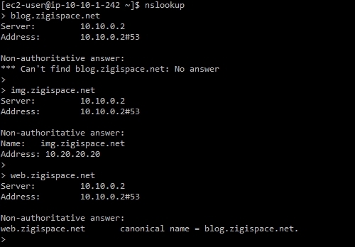 web.zigispace.net은 cname 값으로 blog.zigispace.net으로 설정되어 있어서, 해당 값에 대한 답을 받아오지 못하기 떄문입니다.