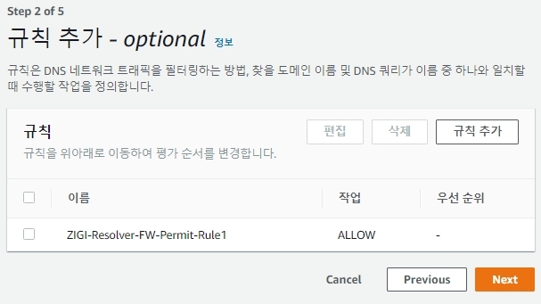 여기에서는 ZIGI-Resolver-FW 라는 이름으로 규칙 그룹의 이름을 정하고, 설명은 별도로 넣지 않았습니다.