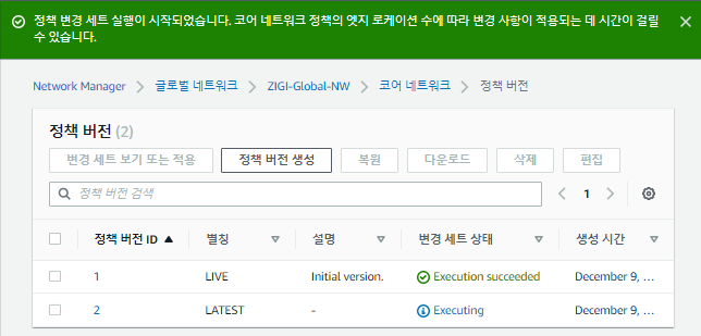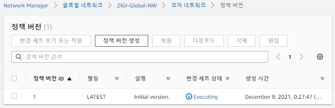코어 네트워크의 정책 버전 항목에 들어가보면, 다음과 같이현재 정책이 Executing 상태인 것을 볼 수 있습니다.