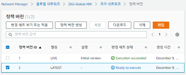 코어 네트워크의 정책 버전 항목에 들어가보면, 다음과 같이현재 정책이 Executing 상태인 것을 볼 수 있습니다.