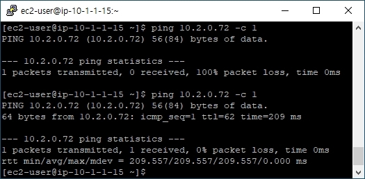 마찬가지로, Singapore의 EC2에서 Virginia의 EC2로 Ping 테스트한 결과도 동일합니다.