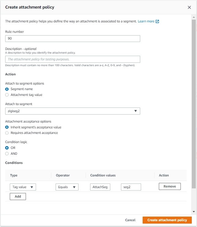 이번 Attachment Policy는 Attachment를 Segment에 연결하기 위한 옵션으로