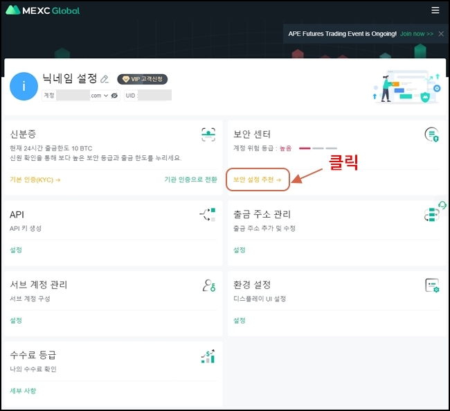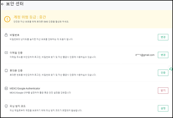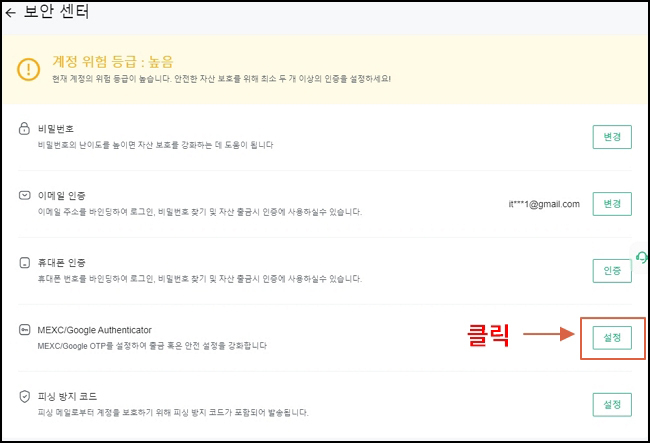초기 가입을 하고나면, "계정 위험 등급"이 높음이어서
