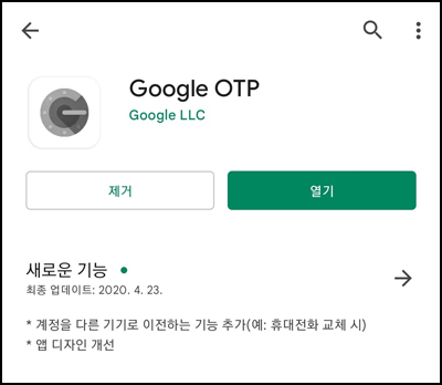 Google 플레이스토어에서 'Google Authenticatior' 혹은 'Google OTP'로 검색하셔서 앱을 설치합니다.