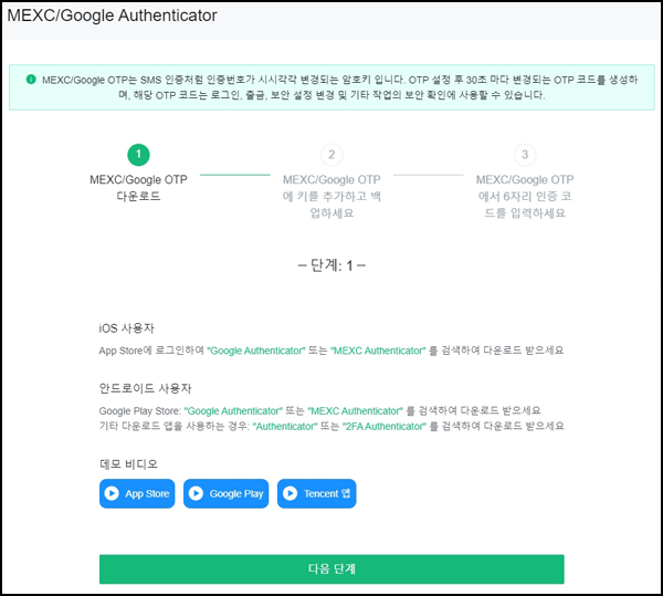 MEXC 이외에 다양한 곳에서 사용하시려면, Google Authenticator을 사용하는 것이 일반적입니다.