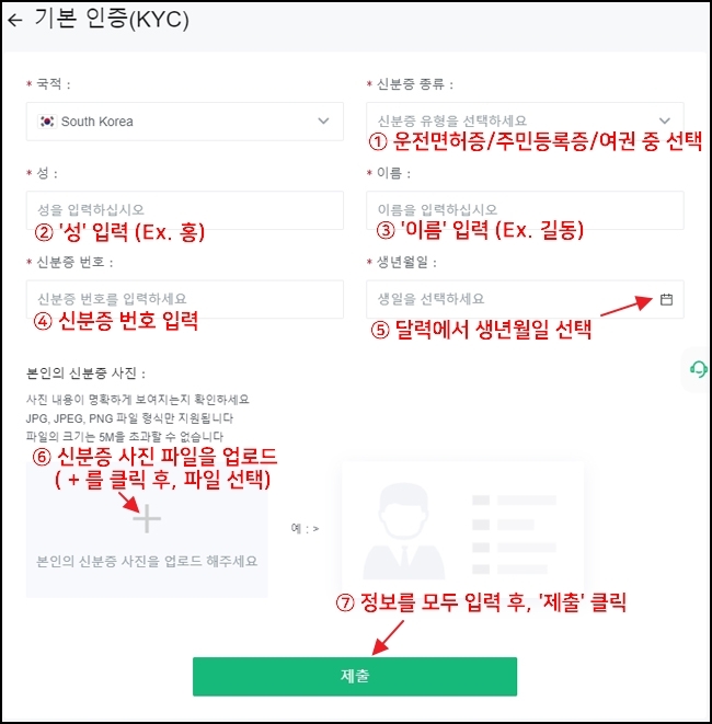 ⑦ 정보 기입 및 사진 업로드가 되면, '제출'을 클릭합니다.