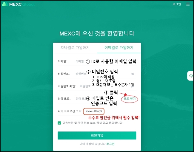 먼저 아직 MEXC 가입을 시작하지 않으셨다면,