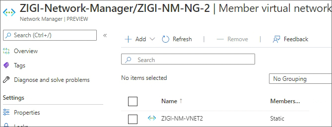 'ZIGI-NM-NG-2' 라는 Network Group에는 ZIGI-NM-VNET2 가 static으로 연결되어 있습니다.