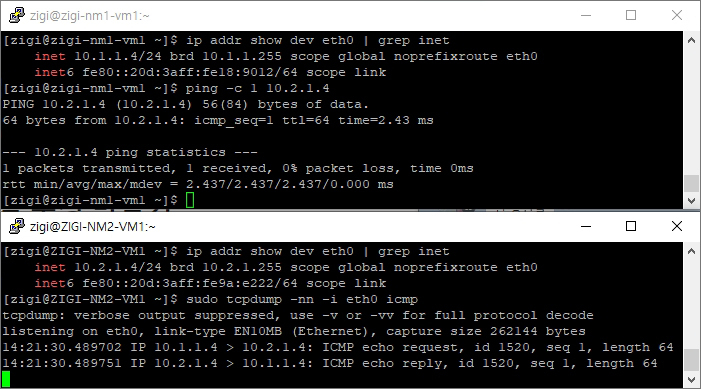 정상적으로 통신이 되는지를 단일 Network Group과 2개의 Network Group 구성으로 확인 했습니다.