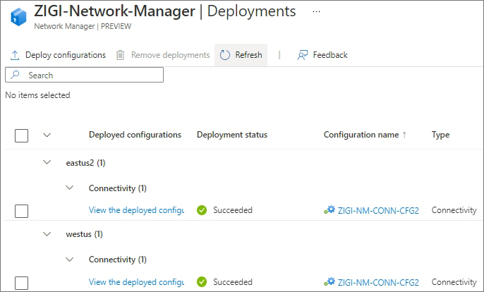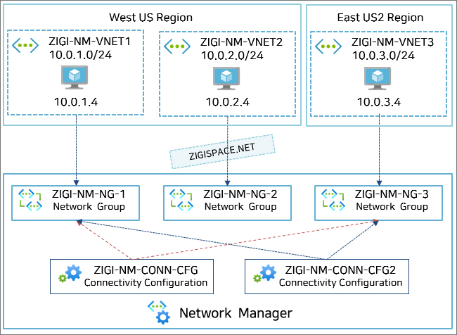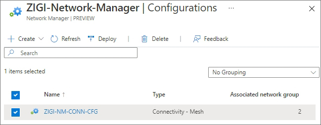 현재 2개의 Network Group이 'ZIGI-NM-CONN-CFG' Connectivity Configuration에 설정되어 있습니다.