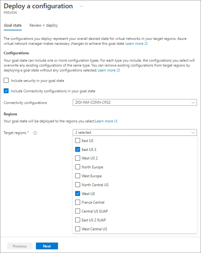 Region은 ZIGI-NM-NG-1이 있는 West US 리전과, ZIGI-NM-NG-3이 있는 East US 2 리전을 선택합니다.