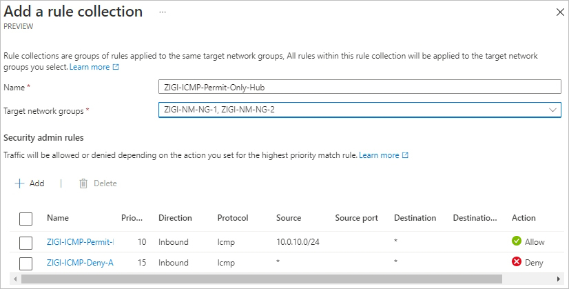 Rule Collection에는 또한 Target network groups을 지정 할 수 있기 때문에