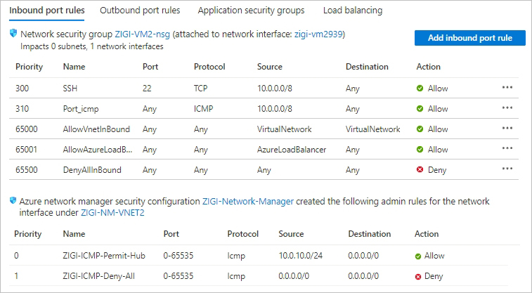 ZIGI-NM-NG-2 Network Group에 속한 ZIGI-VM2의 NSG도 ZIGI-VM1의 NSG와 동일합니다.