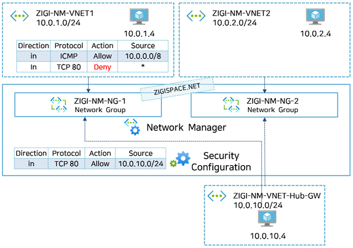 Security Configuration에서 ZIGI-VM1과 ZIGI-VM2가 속한 VNet의 Network Group에