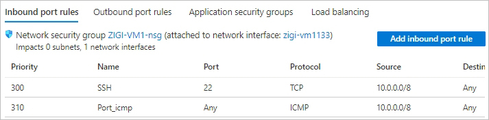 이제 ZIGI-VM1의 NSG를 확인해 보겠습니다.