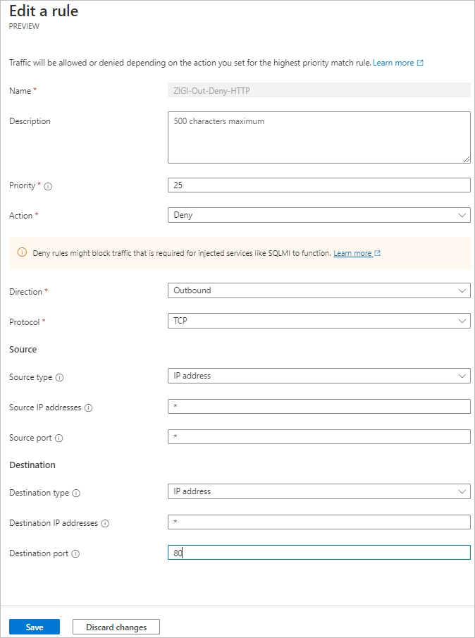 ZIGI-VM1의 NSG에 TCP 80 포트(HTTP)로 들어오는(Inbound) 모든 패킷을 차단(Deny)하는 정책을 추가합니다.