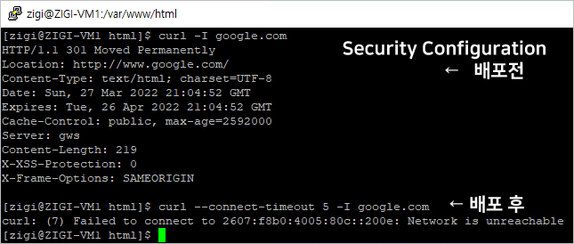 배포가 된 이후에 ZIGI-VM1에서 테스트를 해보면,