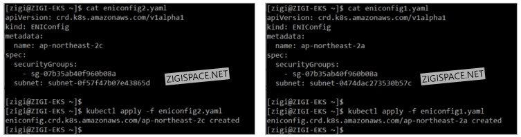 각각 서로 다른 가용 영역으로 2개의 가용 영역 사용했기 대문에 ENIConfig Custom 리소스 생성을 2번을 합니다.