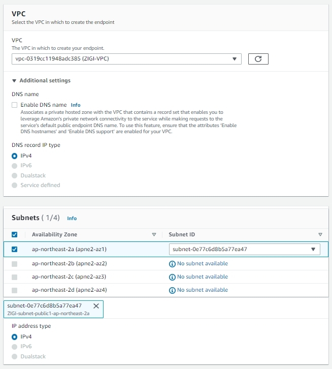 그 이후에 Interface Endpoint를 만들 VPC를 지정하고,