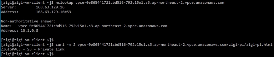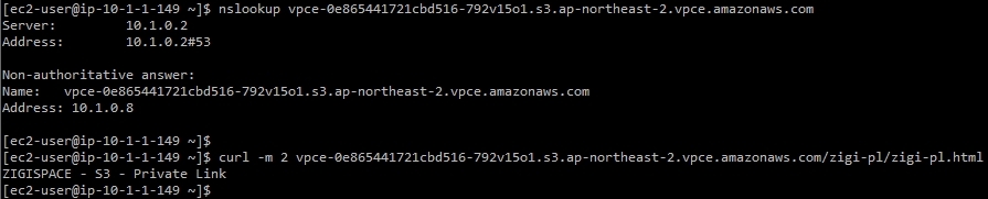 다시 Private Subnet에 위치한 10.1.1.149 EC2에서 S3 버킷에 대한 도메인 질의와 접속을 테스트 합니다.