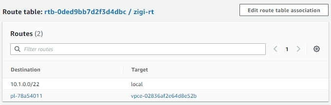 아래와 같이 Target이 vpce-로 시작하는 Endpoint를 목적지로 하는 경로가 생성된 것을 볼 수 있습니다.