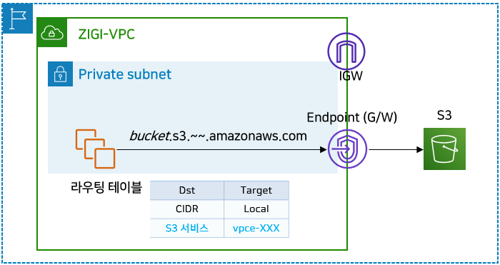 IGW를 통하지 않고 S3로 접근할 수 있도록 도와주는 것이 Endpoint 입니다.